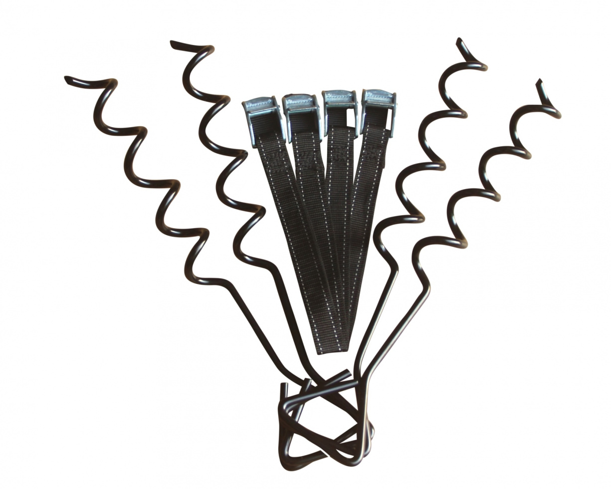 Todella monipuolinen kiinnityssetti. Pysyy todella lujasti maassa kiinni ja tällä setillä voidaan kiinnittää tukevasti mm. trampoliinit tai caravan etuteltat / markiisit.