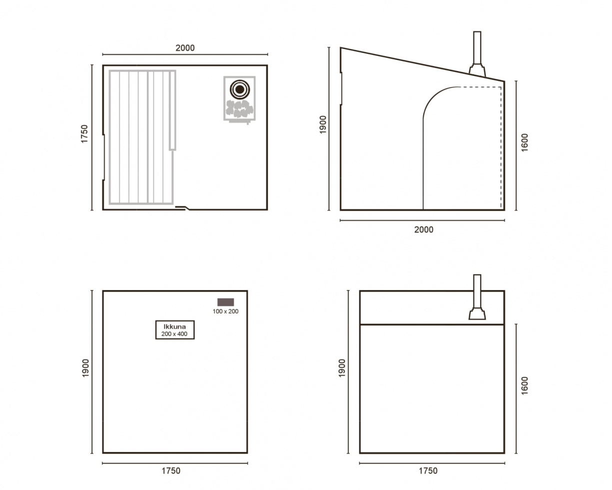 - Mitat (K x L x P): 1900/1600 x 1750 x 2000 mm